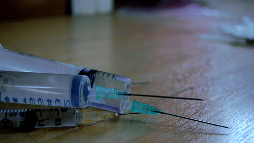 Las enfermeras agarran las jeringas cual dardo.
