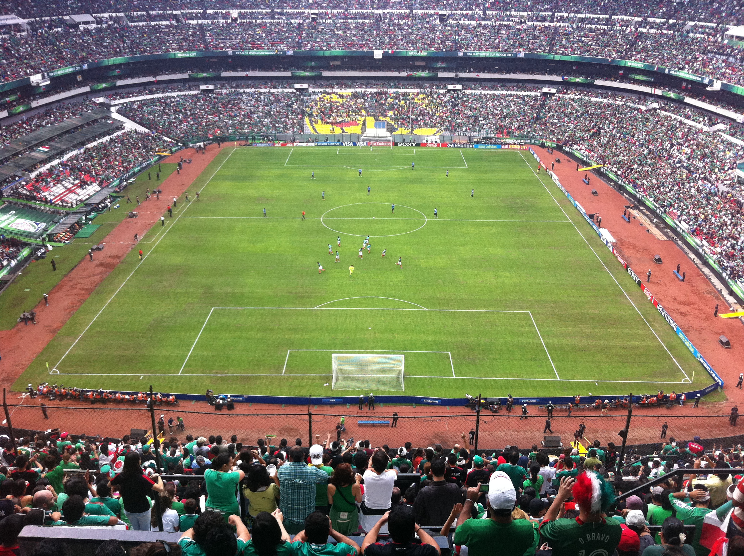 Tras el “partido del siglo” (sub 17, no empiecen) entre México y los teutones, y la manera en que se consiguió el triunfo, era importante visitar el estadio Azteca para la final. Instalados en el lugar y en espera de ver salir al terreno de juego a los verdes y a los celestes, disfrutamos de un Brasil vs Alemania, que nos entretuvo y que ofreció 7 goles. El tercer sitio, pues, fue para los alemanes.