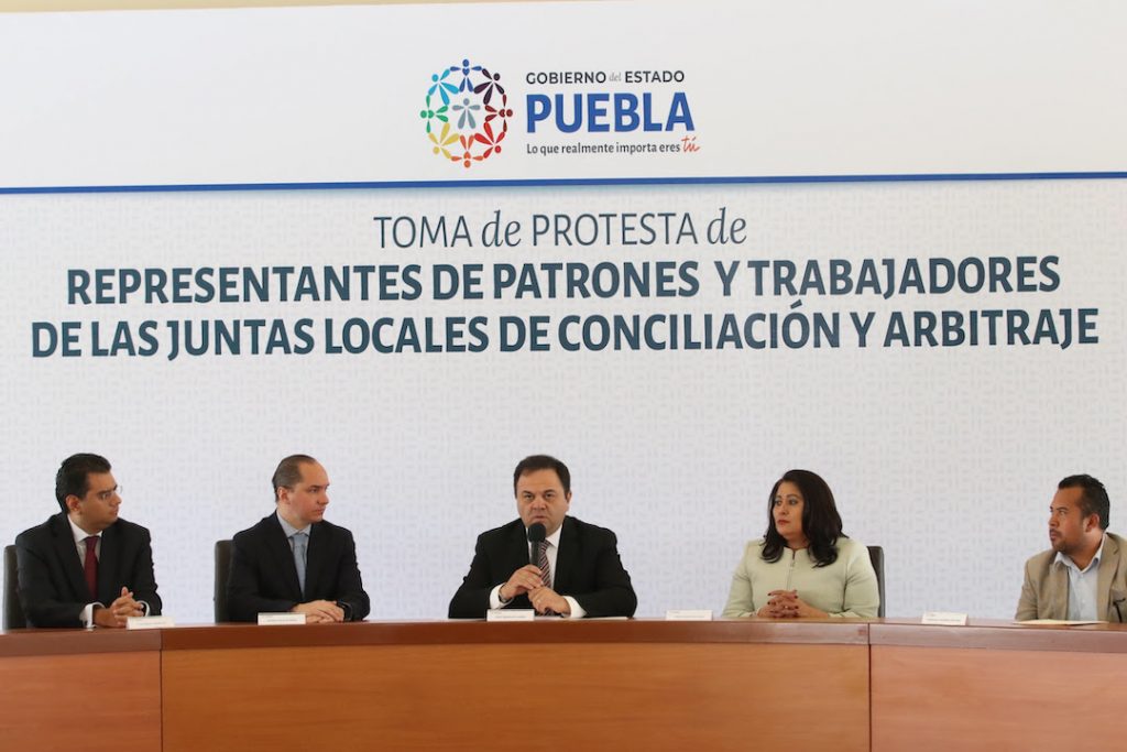 Con la finalidad de impulsar el equilibrio, la justicia social entre trabajadores y patrones, así como de generar mejores condiciones para la competitividad y el desarrollo económico de Puebla, el Encargado de Despacho de la Gubernatura, Jesús Rodríguez Almeida tomó protesta a representantes de patrones y trabajadores ante las ocho Juntas Especiales Locales de Conciliación y Arbitraje, para el periodo 2019-2024.